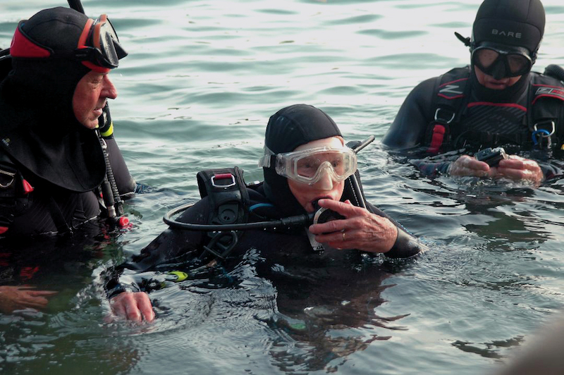 “We wanted to make sure there were no SNAFUs,” he continued. “We helped him get in the lake and once he was in the water, we put the tank on him so that his body wouldn’t feel any weight.”