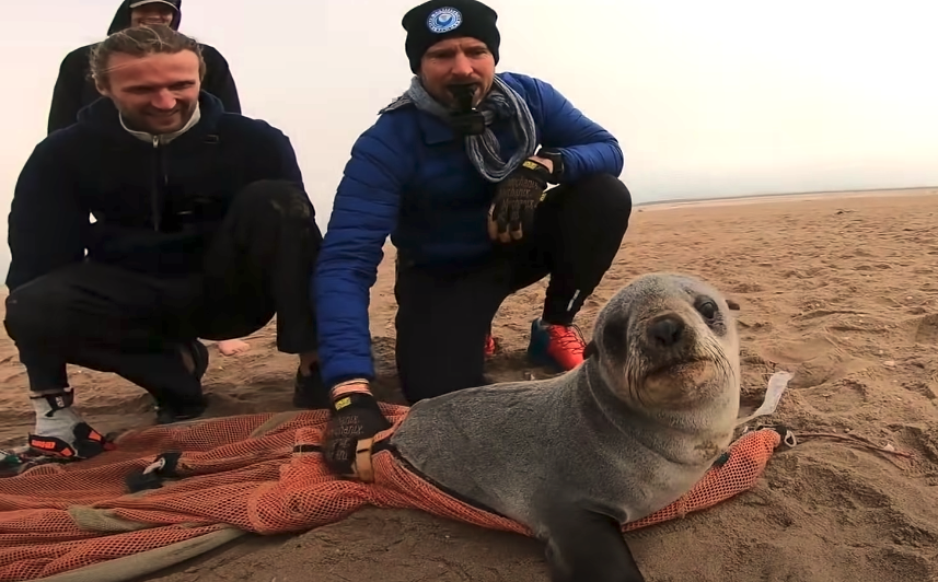 In the video below, shot at Pelican Point, Namibia, organization rescuers Antoine and Naude track, identify and catch seal pups that are enmeshed in obstructive agents, such as strings, wires, plastics, etc.