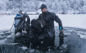 Before I get out of car I need to make a plan how to get dressed as quickly as possible without losing too much heat. Now is when the material quality of all layers matter more than ever before, but most critical is the effort you expend just to kit up! The X-mission does a great job here. Light, precisely sized, easy to put on – it offers the right dose of support. Once I am dressed, I feel like I’m ready to go skiing rather than diving! Nice and warm base and mid layer, combined with ultra-light X-Mission gives me the feeling that I can take bath in the snow. Wading through waist high snow feels like nothing! It warms me up before the 0°C water hits with striking force. Using the thick mid layer Polar Extreme, dry gloves and a thick hood is a must here.