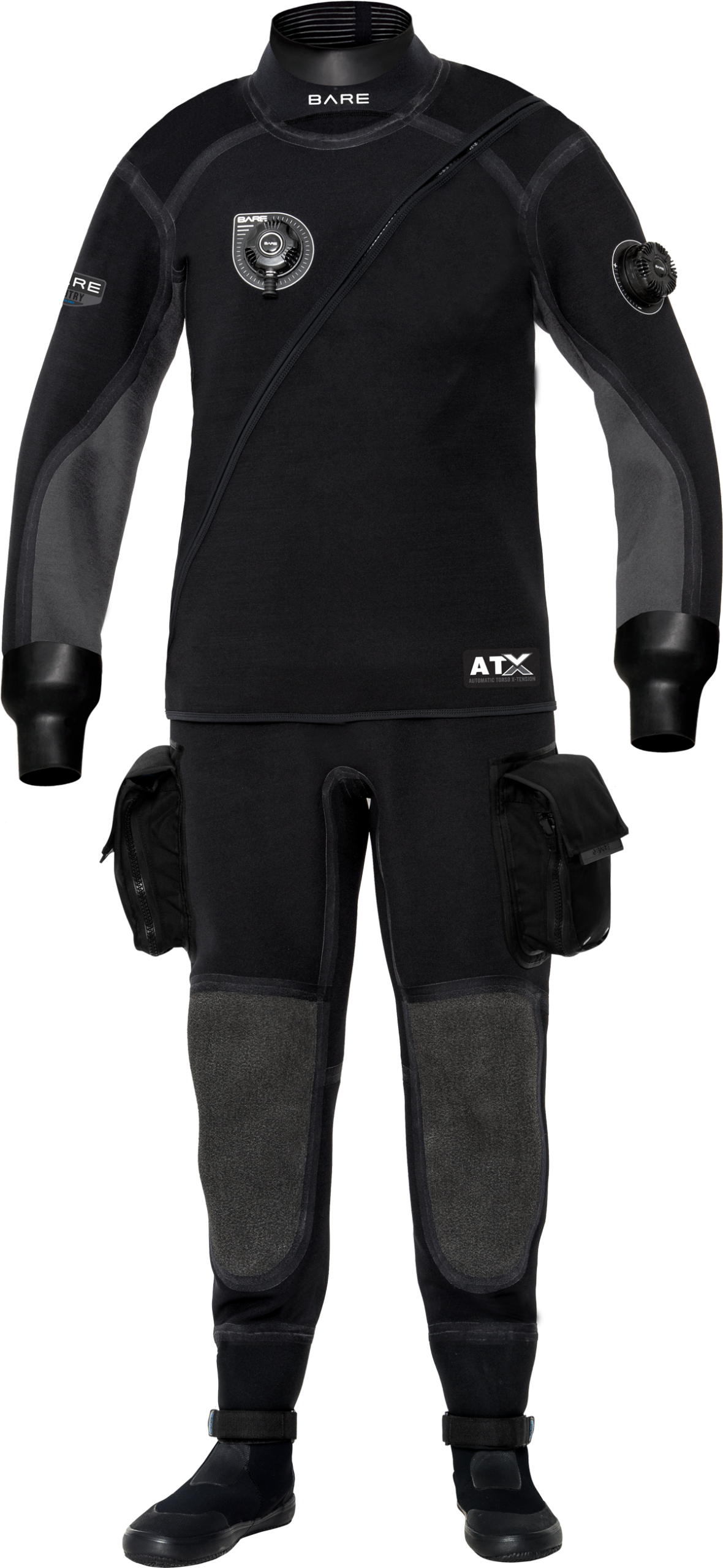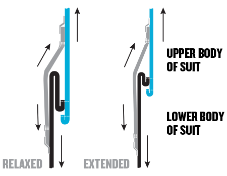 The patented ATX system provides amazing flexibility when you’re bending, kneeling and reaching upward. It works by maintaining a tucked fold in the center of the suit allowing the top and bottom to move independently of each other. This great feature eliminates the need for a cumbersome crotch strap.