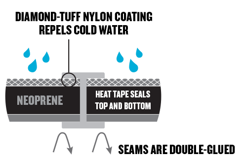 This technology makes suits without a single seam stitch. Instead, seams are double-glued and heat taped inside and out. This BARE exclusive delivers superior performance and maximizes the life of your drysuit or wetsuit by eliminating holes in the neoprene from stitching. NST can be found on all neoprene drysuits.