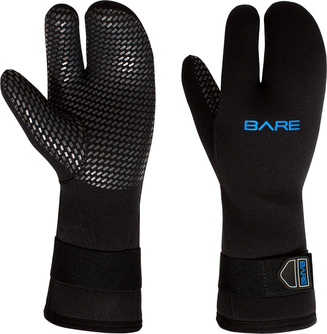 The BARE 7mm 3-Finger Mitt is for those diving in cold waters that prefer a three-finger mitt style glove and are looking for additional warmth in frigid temps. An adjustable Velcro™ strap ensures minimal water exchange and the 3-finger mitt design provides extra warmth and thermal regulation in truly cold conditions.