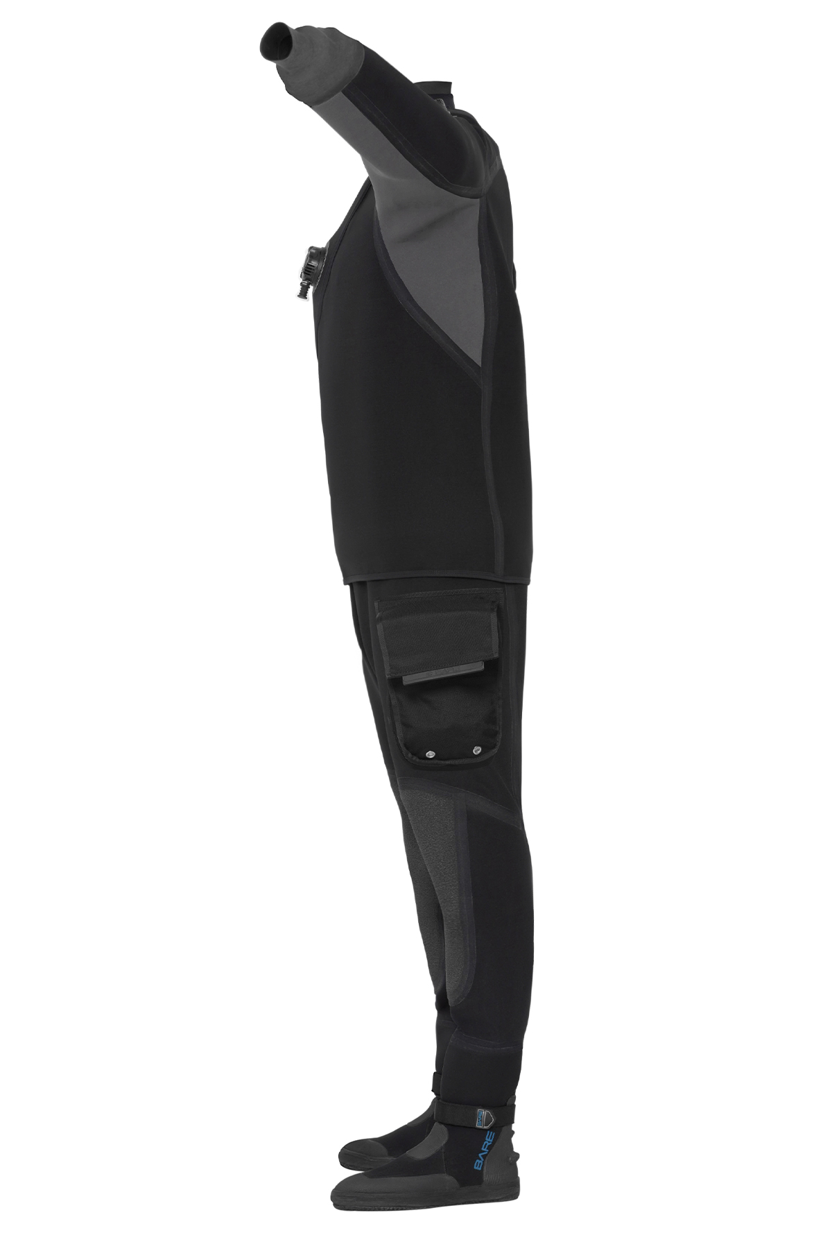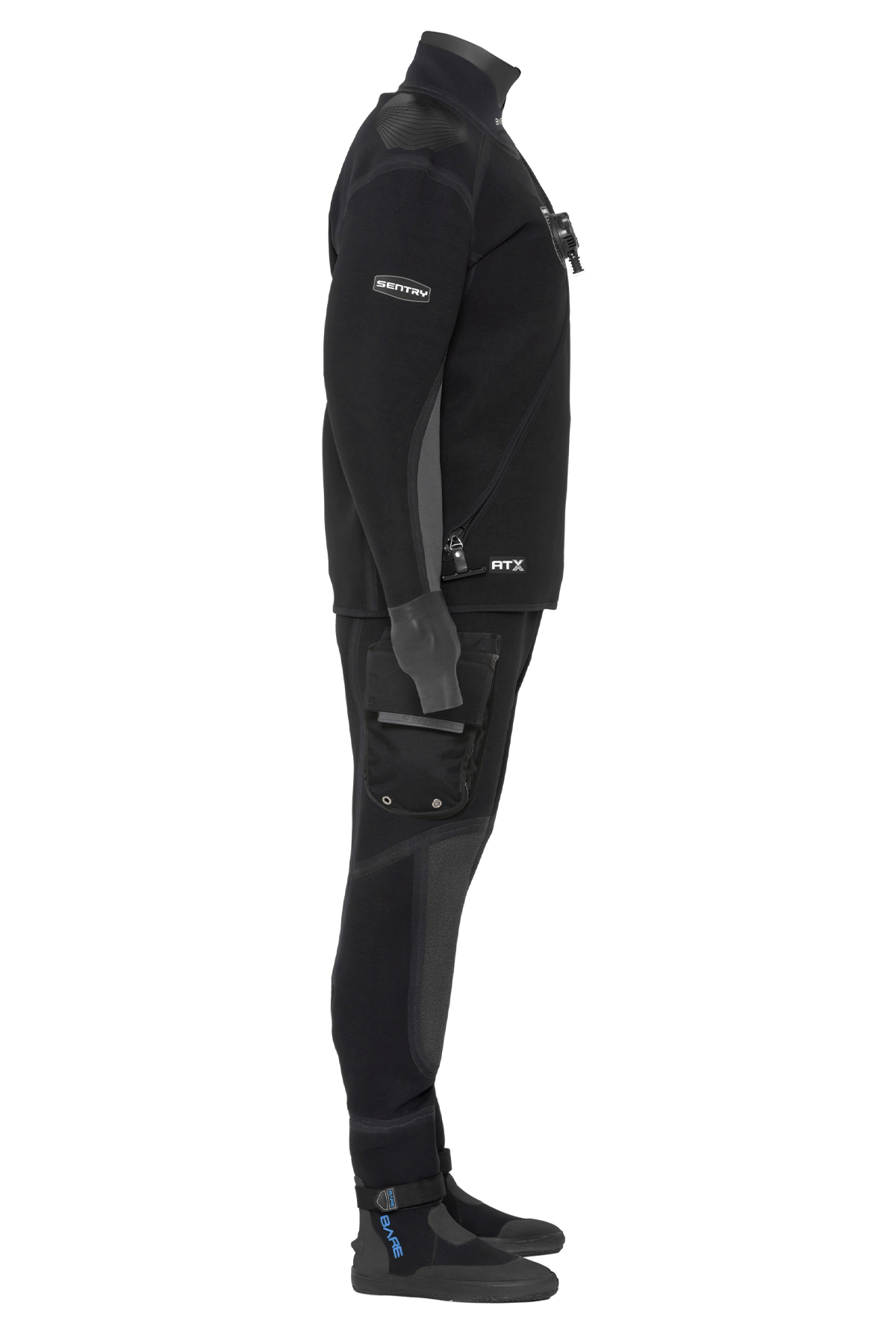 Sentry Tech Dry combines thermal and operational capabilities that meet the demands of commercial divers with the flexibility and comfort of a tropical wetsuit. Constructed with high density Yamamoto neoprene with high stretch and high resistance to compression, and BARE’s new and improved No Stitch Technology (NST), Sentry Tech Dry retains one of the highest abrasion resistance ratings in the BARE line. Includes Automatic Torso X-Tension System (ATX) with built-in suspenders for torso length adjustment, breathability and easy donning and doffing.