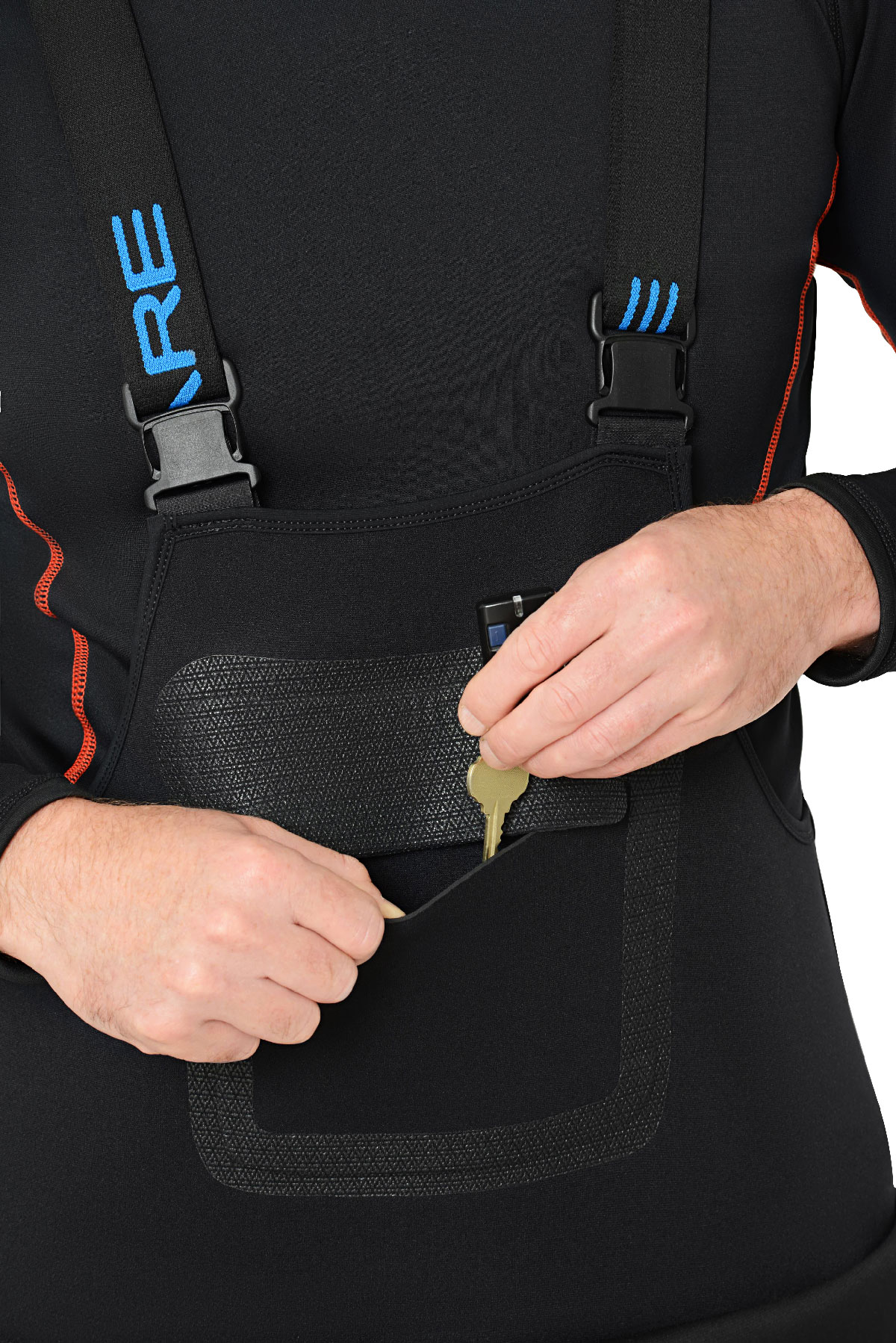Our design team has created a suit that delivers the best mix of attributes available in any drysuit on the market today. Yamamoto High Density Neoprene is hyper-compressed for optimum resistance against deep-water high-pressure compression, and the Kanako Outer Layer increases suit longevity, durability, and comfort. NST makes suits without a single seam stitch. Instead, seams are double-glued and heat taped inside and out. This BARE-exclusive feature delivers superior performance and maximizes the life of your drysuit by eliminating holes in the neoprene from stitching.