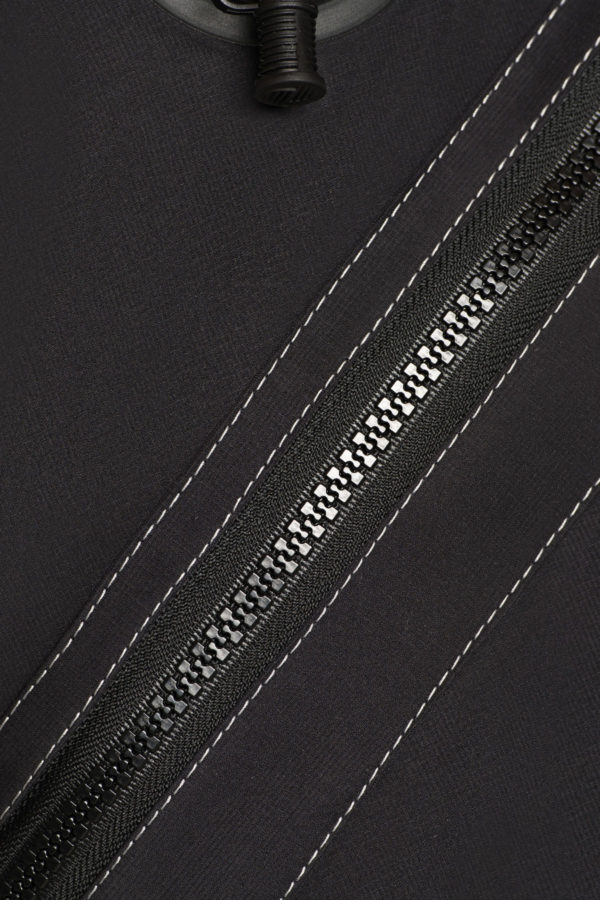- Lightweight low profile plastic dry zipper and offset protected zipper flap to avoid contact between dry zipper and outer flap