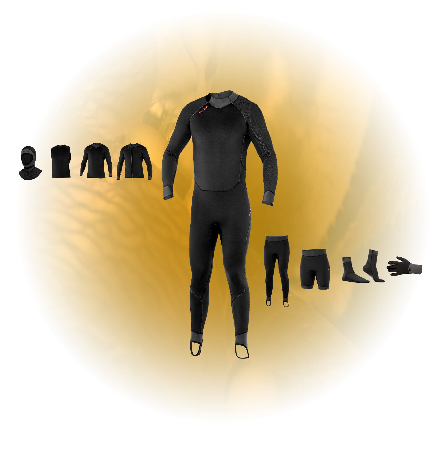 - 2mm ELASTEK Full Stretch Neoprene at neck, wrist and ankles for added comfort and sealing