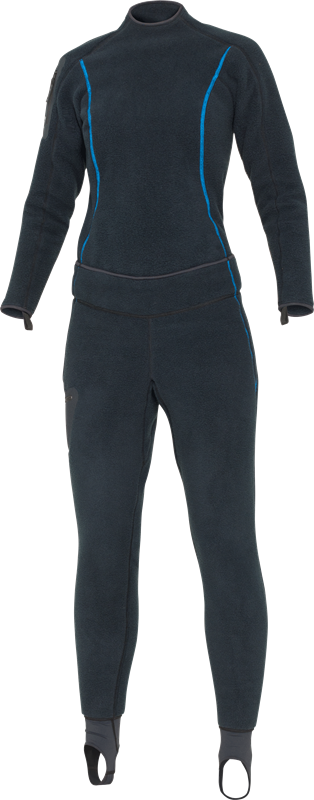 • Compression-Resistant Fleece. Exclusively engineered, this is the first and only fleece fabric designed to be worn under a drysuit.  Compression resistance fleece reduces the need for “loft” to create a thermal barrier thereby eliminating a “bulky” undergarment. It also maintains insulating values at changing depths allowing the diver’s core temperature to remain stable.