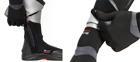Our innovative design and styling focuses on durability and comfort for all kinds of dives and watersports while achieving a unique synergy that complements the entire Ultrawarmth line. These easy-entry boots restrict water flow, protect feet from sharp objects, prevent fin blistering, and fit all variations of lower leg shapes and sizes.