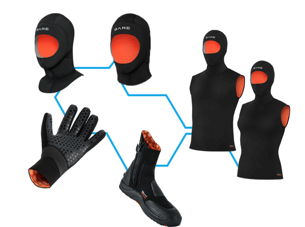Sharp, minimal styling of Ultrawarmth Accessories coordinates with all colorways of BARE wetsuits, and provides you with the unique, high-end look that you expect from all BARE products.